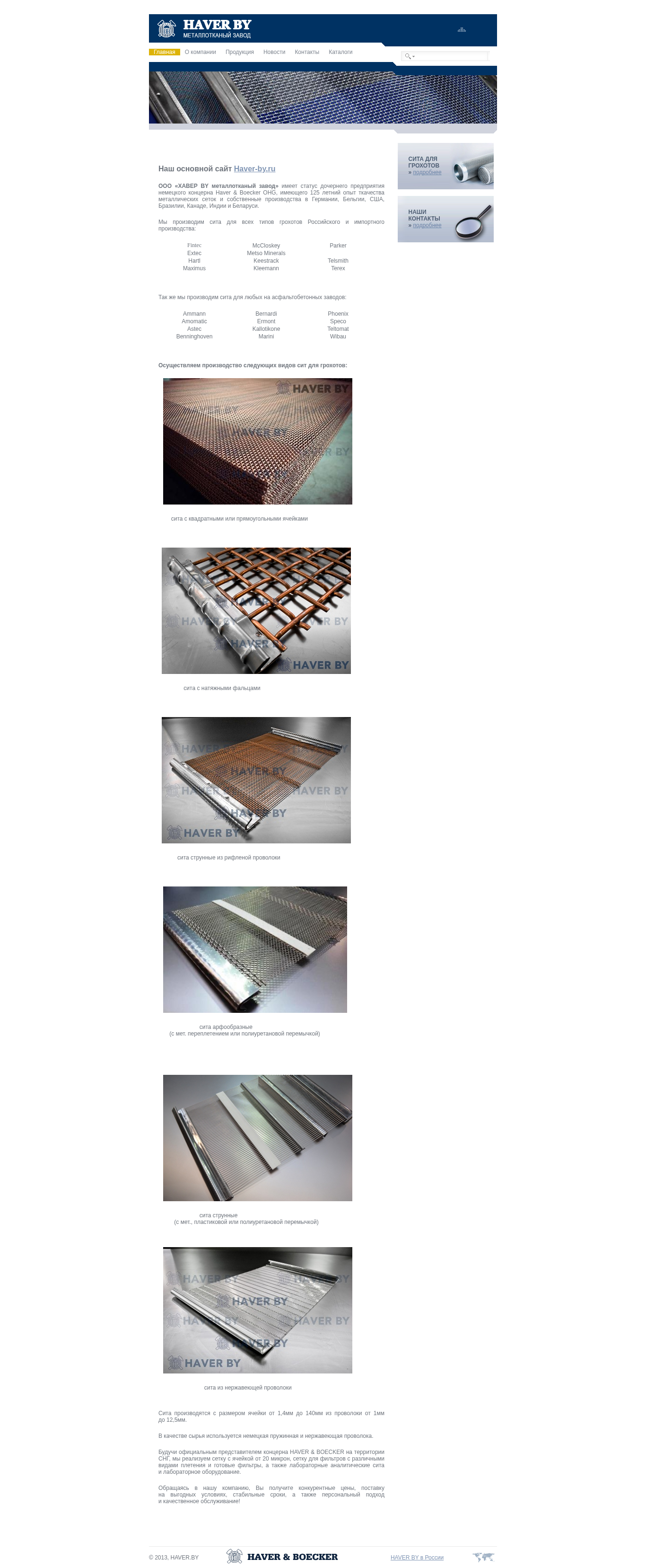 | AI-анализ | Это сайт компании OOO "Haver By metallo-tkanoy zavod", дочерней структуры немецкой Haver & Boecker OHG. Он представляет собой каталог металлических сит для различных типов фильтров и батчей для асфальта. Сайт предоставляет различные типы сит, включая те с квадратными, прямоугольными, или арф-образными клетками, а также те с или без натянутыми фалцатами и из нержавеющей стали. Компания предлагает конкурентные цены, удобные условия доставки и личный подход к клиентам, а также качественное послепродажное обслуживание. Сайт расположен в Беларуси. Главная страница содержит краткий обзор продуктов и услуг компании с ссылками на подробнее и контактные данные. Ключевые слова и часто используемые слова подтверждают, что этот сайт посвящен металлическим ситам. |