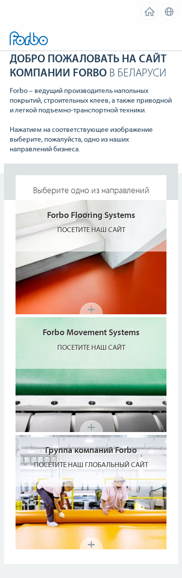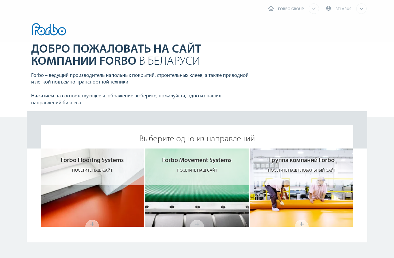 | AI-анализ | country: Belarus language: Russian This site is the official website of Forbo in Belarus, presenting itself as a global leader in Flooring, Construction Adhesives, and Conveying Engineering. The site is primarily in Russian, with a simple and straightforward structure, featuring a pulldown menu with links to different sections. The main sections, Forbo Flooring Systems and Forbo Movement Systems, showcase the company's products and services, including flooring, construction adhesives, and conveying engineering solutions. The site also highlights Forbo's global leadership in the linoleum market, with a market share of over 65%, and its brand Eurocol, offering ready-to-use adhesives for flooring and ceramic tiles. Additionally, the site promotes Forbo's conveying engineering solutions under the brand Siegling. Overall, the site provides a comprehensive overview of Forbo's products and services in Belarus, targeting various industries such as construction, healthcare, education, |