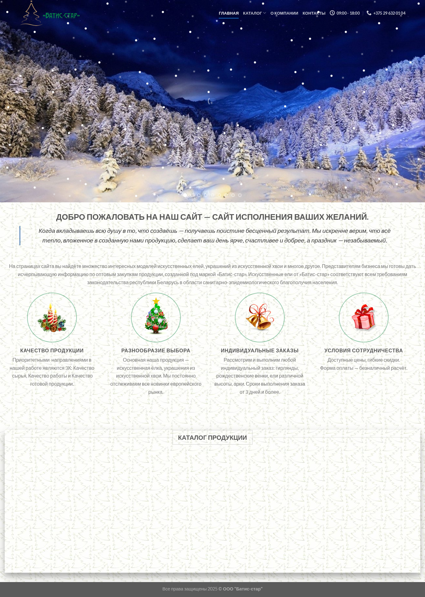 | Название / Заголовок | ООО Батис-стар. — Искусственные ели, сосны, пирамиды, новогодний декор. Производство и оптовые продажи. Минск, Белоруссия. |