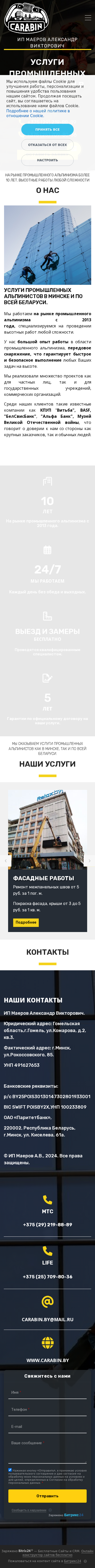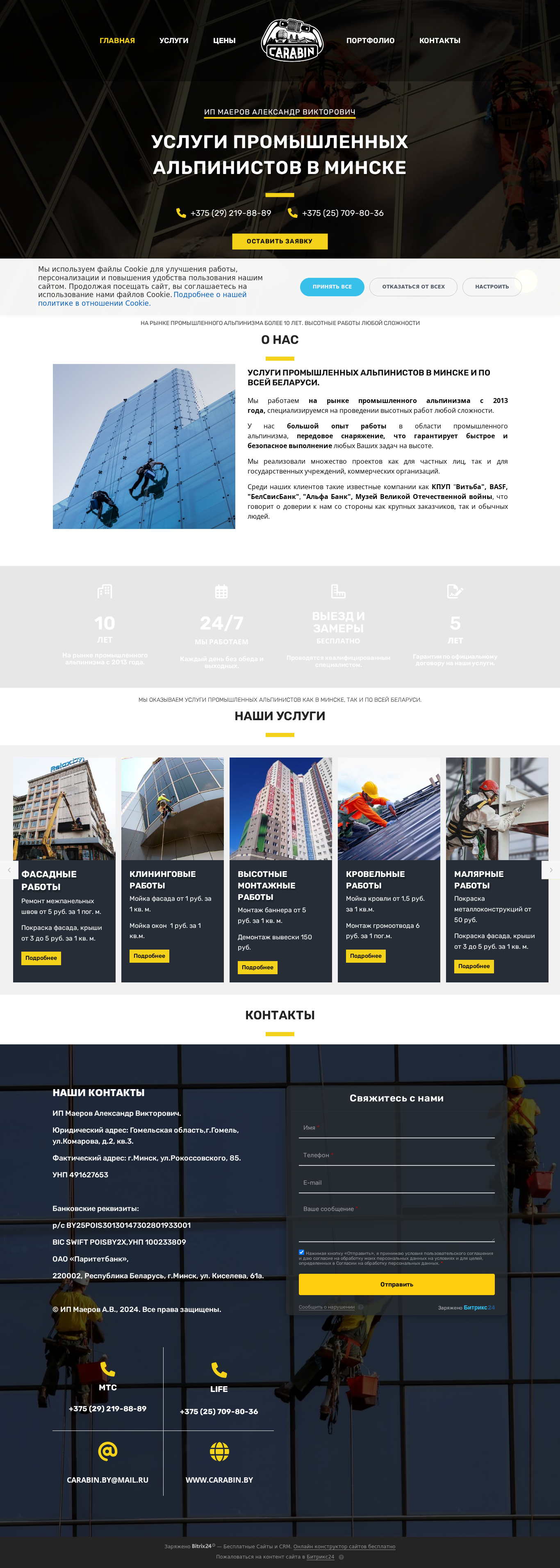 | AI-анализ | This website offers industrial rope access services in Minsk and Belarus, specializing in various high-altitude tasks. Services include facade works, repair of inter-panel joints, cleaning and painting of facades and roofs, insulation of walls and germetization of balconies. Clients include well-known companies such as KPUP "Vityba", BASF, BelSwissBank, Alfa Bank, and the Museum of the Great Patriotic War. The company has over 10 years of experience in industrial rope access and employs qualified specialists for all projects. Services are available 24/7 throughout Belarus. Prices for specific tasks are listed, including facade cleaning from 1 ruble per square meter, inter-panel joint repair from 5 rubles per square meter, and roof cleaning from 1.5 rubles per square meter. Other services include |