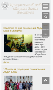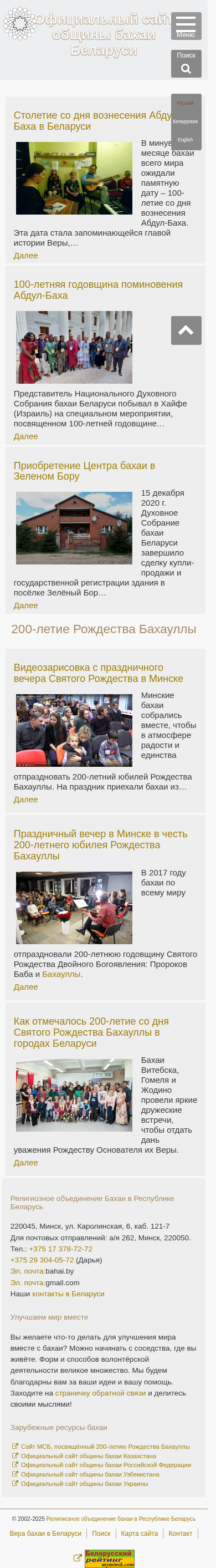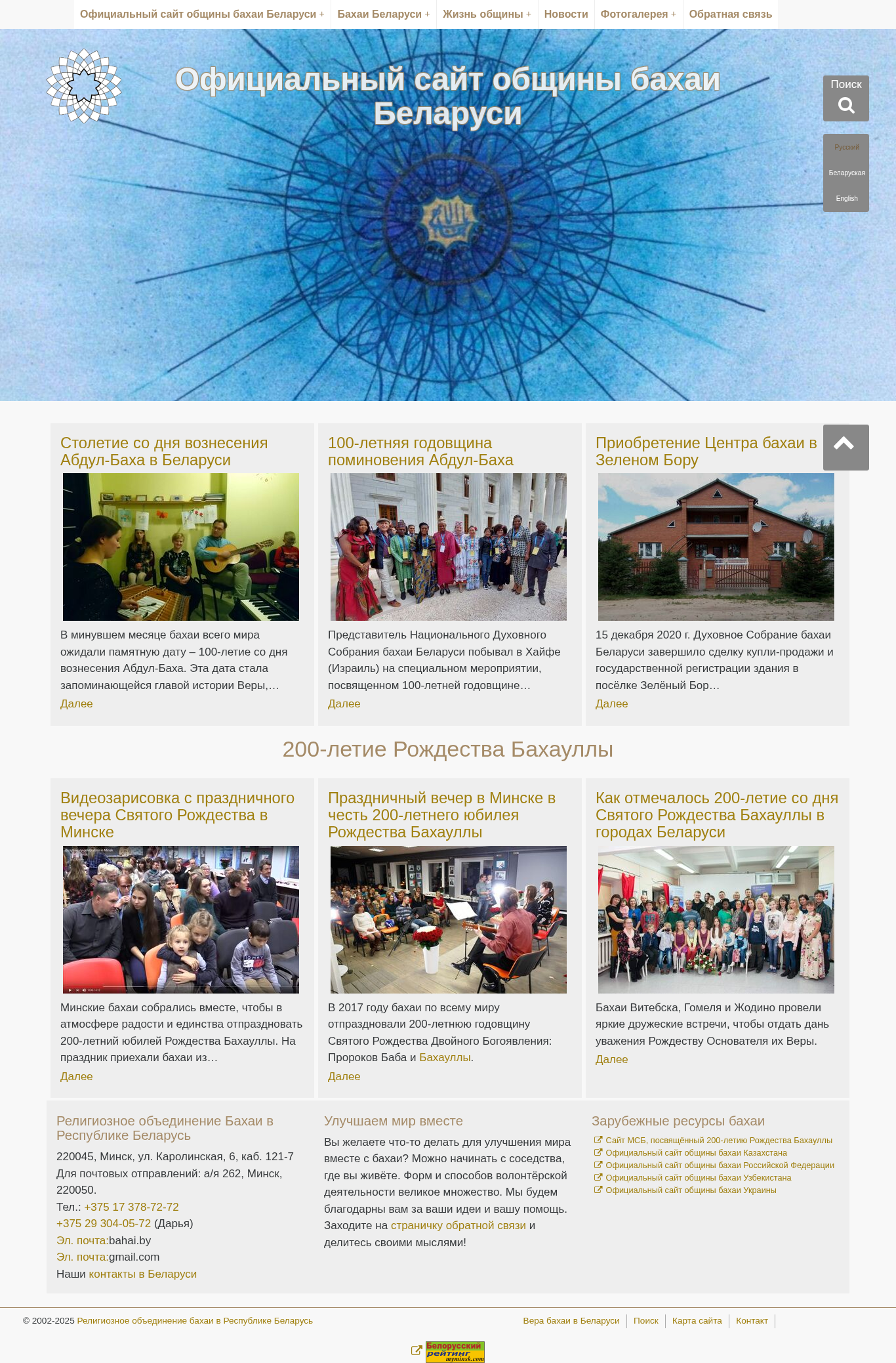 | SEO-описание | Официальная информация о белорусской общине бахаи. Последние новости из жизни общины. Факты о вероучении бахаи. Историческая справка. Направления деятельности. Общины в городах Беларуси. Тематическая подборка фото. Книги о Вере бахаи. Контактная информация. |