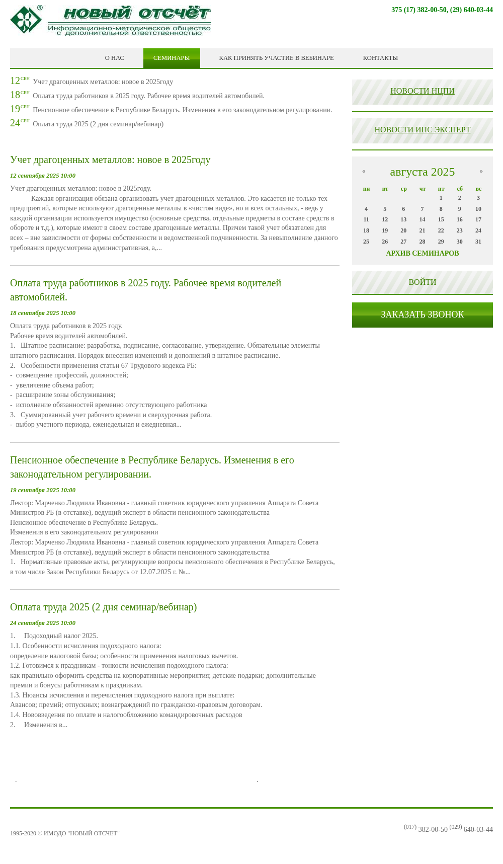 | AI-анализ | Этот сайт, Семинары | НОВЫЙ ОТСЧЕТ (adlik.by), предоставляет семинары по учету за 2025 год, сосредоточенные на новых правилах учета имущества в бесплатном порядке. Тематика включает в себя применение этих новых правил, требования к аналитическому учету и порядок записи имущества на балансе к 1 июля 2025 года. Кроме того, здесь рассматриваются последствия амортизации и налоговых расчетов, а также налогообложение платных расходов для двухдневного семинара/вебинара 14 июля 2025 года и 24 сентября 2025 года. Другие семинары касаются расчетов налогов доходов, включая конкретные моменты для корпоративных событий, подарков, бонусов и налогообложение плат. Keywords: seminars, accounting, 2025, state property, free use (one-sentence summary: The adlik.by website offers seminars on accounting for 2025, focusing on new rules for accounting state property obtained in free use, including application, analytical accounting requirements, and balance sheet recording order, as well as consequences for amortization and tax calculations, and payroll taxes for seminars on July 14, 2 |