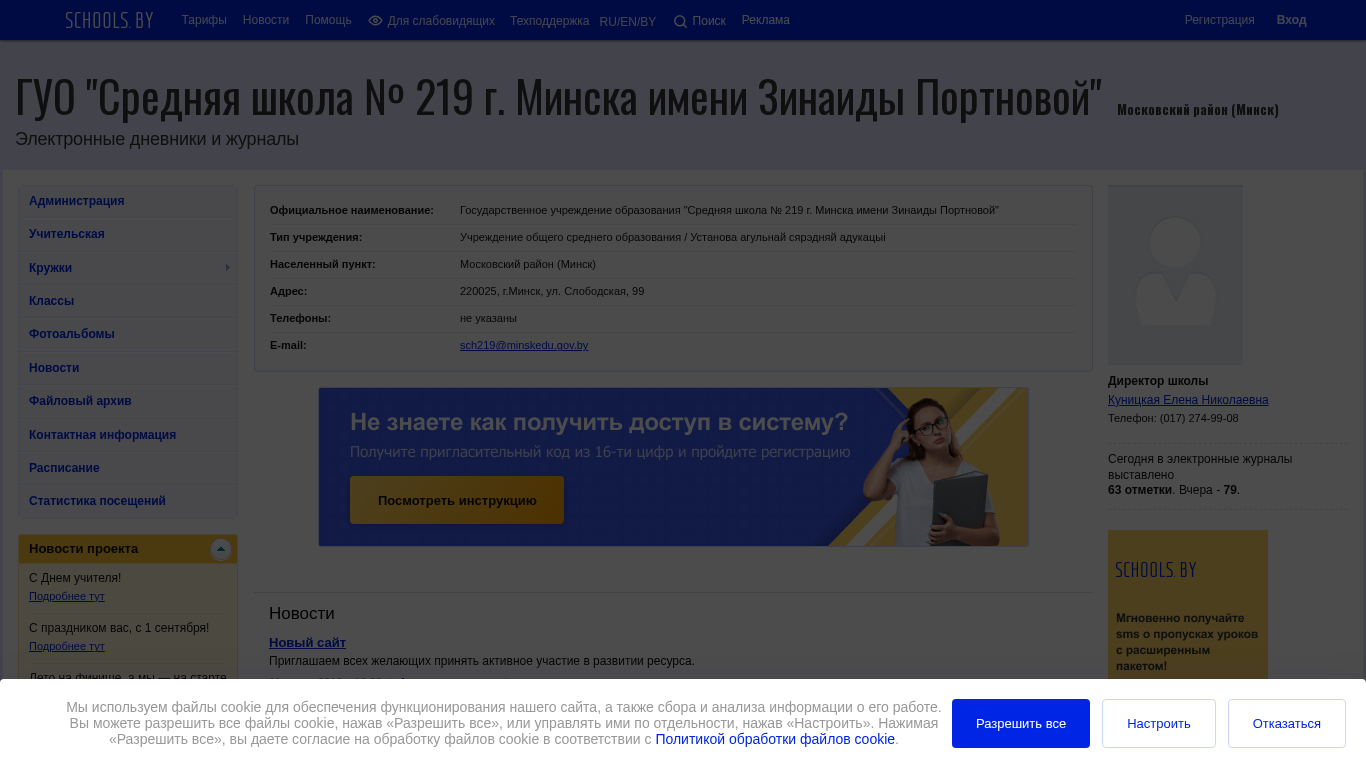 | Название / Заголовок | ГУО "Средняя школа № 219 г. Минска имени Зинаиды Портновой" |