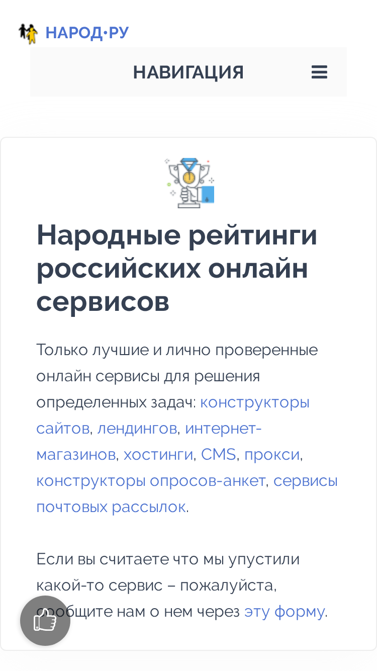 | Название / Заголовок | Народные рейтинги российских онлайн сервисов - Народ.РУ |
