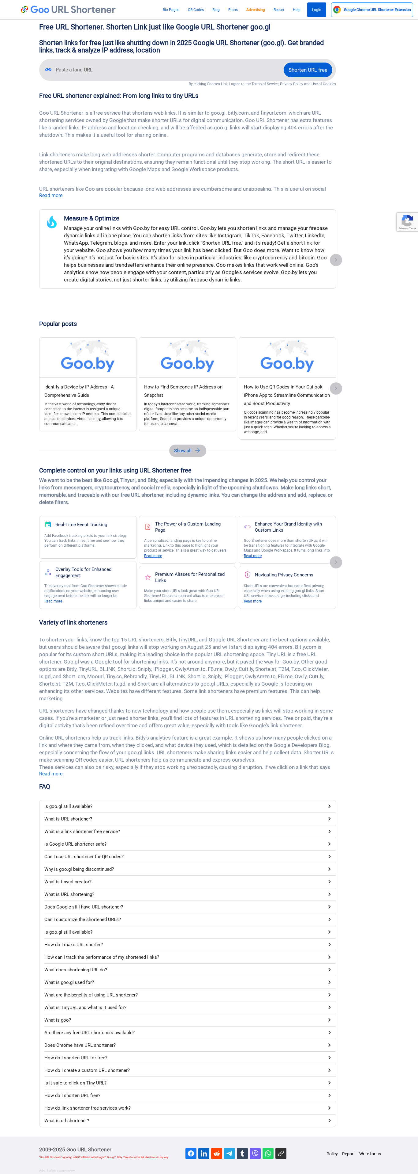 | SEO-описание | Shorten links for free just like shutting down in 2025 Google URL Shortener (goo.gl). Get branded links, track & analyze IP address, location |