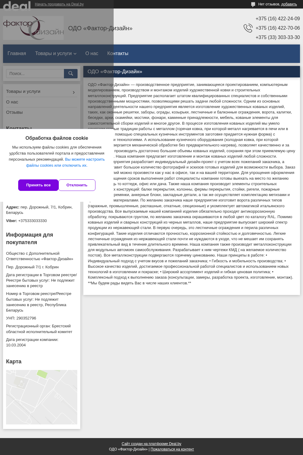 | SEO-описание | Контактная информация, товары и услуги компании "ОДО «Фактор-Дизайн»" |