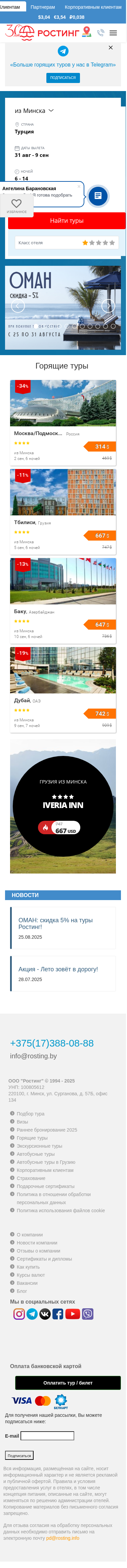 | SEO-описание | Ростинг – ведущий туроператор Беларуси с 1994 года. Организуем авиатуры из Минска в Грузию, Египет, Болгарию, Грецию, Италию, ОАЭ и другие страны. |