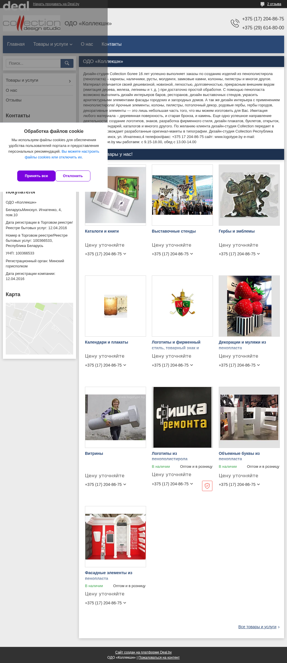 | SEO-описание | Контактная информация, товары и услуги компании "ОДО «Коллекшн»" |