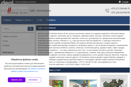 | AI-анализ | The website "ОДО «Коллекшн»" is a Belarusian business offering contacts, products, and services. It specializes in creating decorative elements using peнополистерол (penopolyester), such as columns, pilasters, and arches, for interior design and architectural applications. The material is known for its affordability, novelty, lightness, durability, and versatile appearance that can mimic various materials including wood, metal, and stone. The website also provides design and printing services. Contact information includes phone numbers +375 (17) 204-86-75 and +375 (29) 614-80-00, and an email address rezka@logotype.by. Office location is given as ul. Ignatenko, 4 in Minsk, Bel |