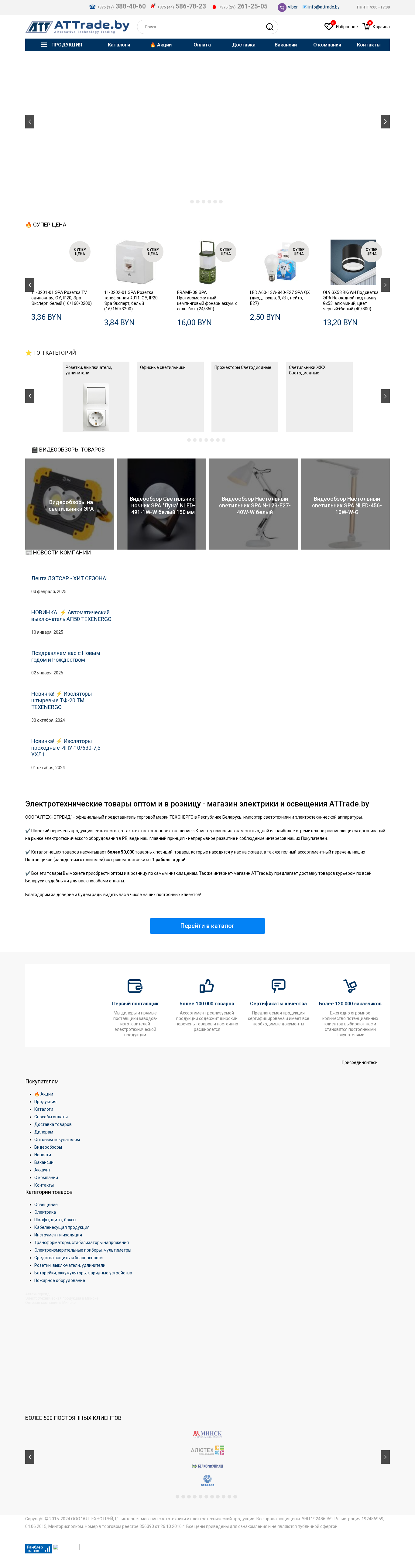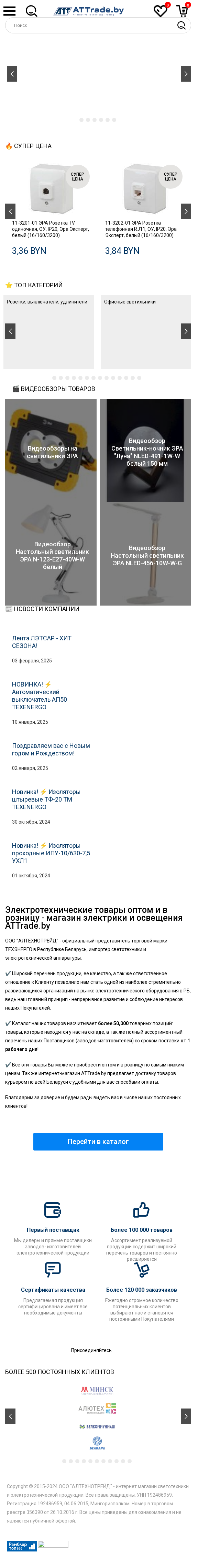 | Название / Заголовок | Электротехническая продукция, электротовары в Минске по оптовым ценам в магазине Освещение и электрика АТТ - ATTrade.by |