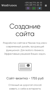 | SEO-описание | Создание сайтов в Минске. Разработка сайтов. Домен и хостинг в подарок. Быстрые сроки – от 3х дней. Примеры работ внутри |