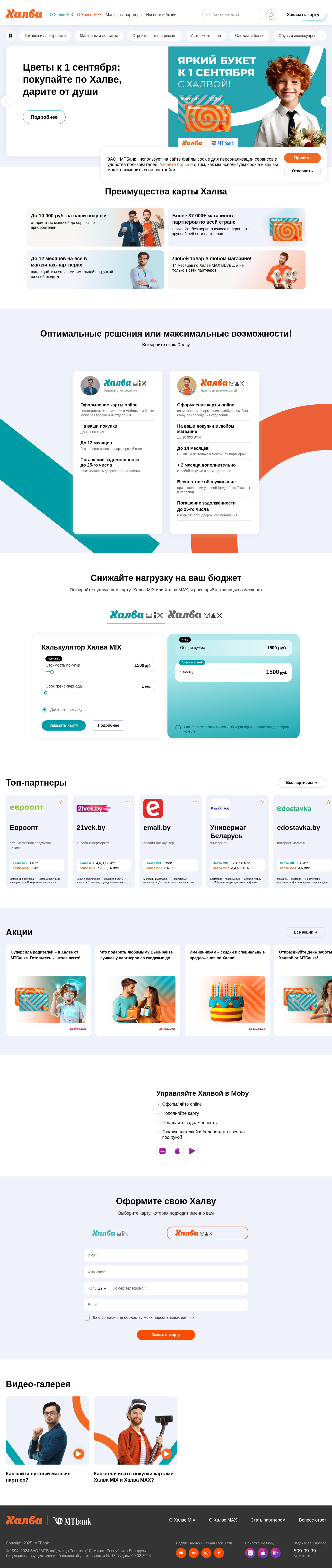 | SEO-описание | Оформляйте карту рассрочки Халва в Минске и Беларуси. Выгодные условия: до 25000 BYN на покупки, ⌛оплата до 14 месяцев без первого взноса. Возможность оформить онлайн |