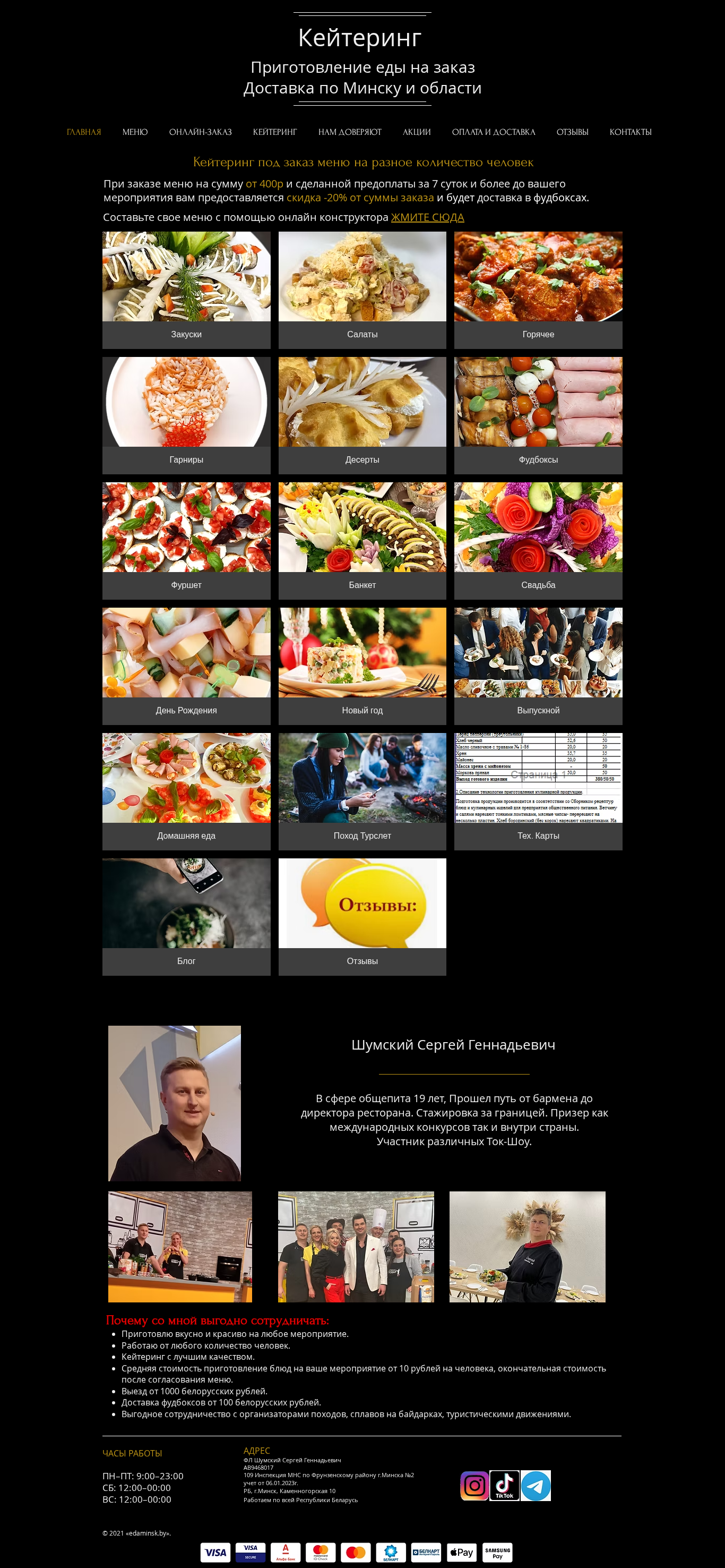 | SEO-описание | Кейтеринговые услуги с поваром на выезд (на час) на любое мероприятие с обслуживанием и без в Минске и области. Пришлите задание на расчет! |