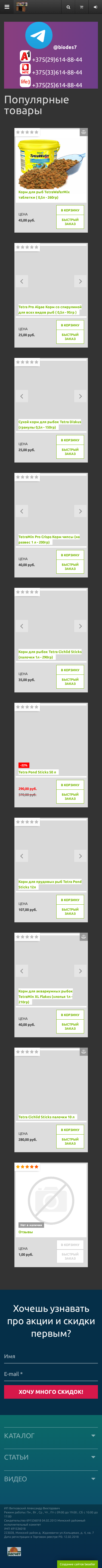 | AI-анализ | The website is an online shop named АкваИдиллия, specializing in aquariums and aquarium equipment. The title, description, and keywords all reflect this focus. The top_words list indicates that 'корм' (feed) and 'оборудование' (equipment) are common terms, with 'аквариумы' (aquariums) and 'рыб' (fish) following closely. Other popular items include filters, heaters, and decorations. The site offers a shopping cart, a registration and login system, and various contact and address options. The catalog includes sections for new products and sales, as well as categories for different types of aquariums and equipment, such as those for tetra fish, biodesign, and terrariums for reptiles. The domain is beseller35653.shop.by. |