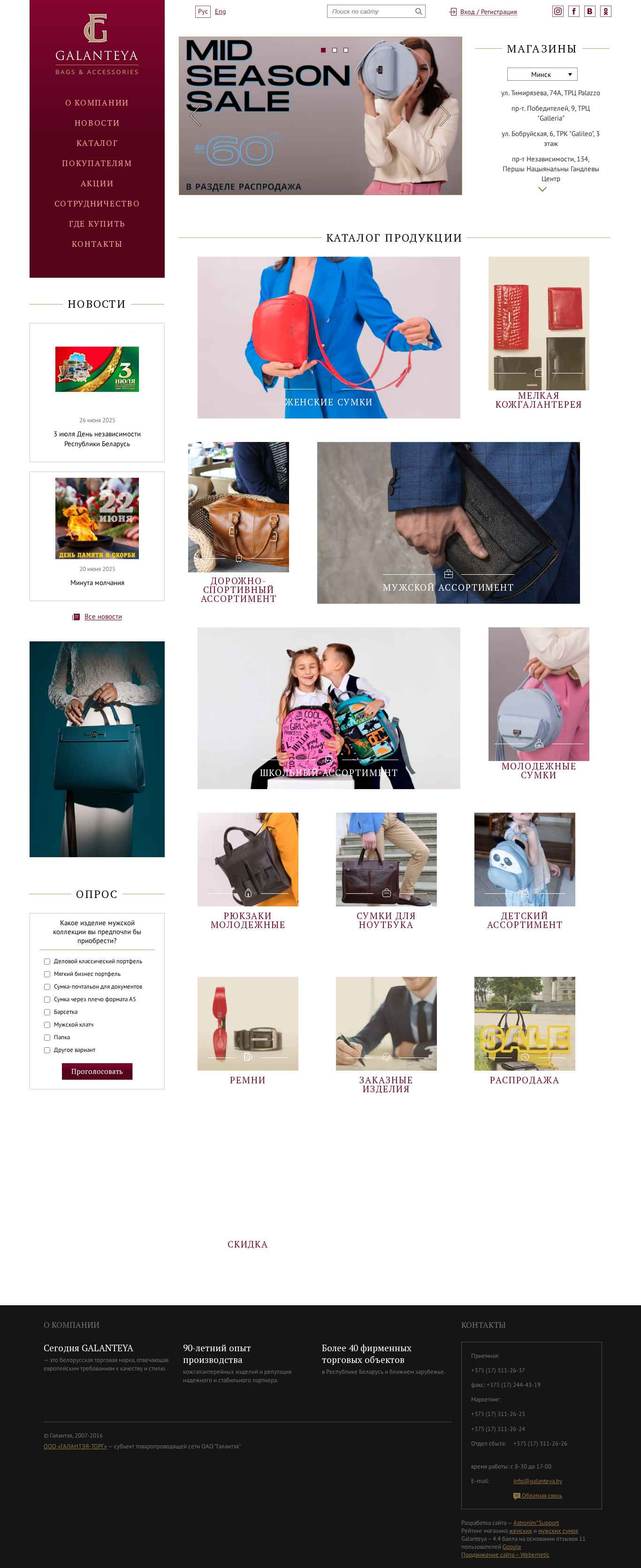 | Название / Заголовок | ОАО "Галантэя" - производство и реализация сумок из натуральной и искусственной кожи, а также других аксессуаров. |