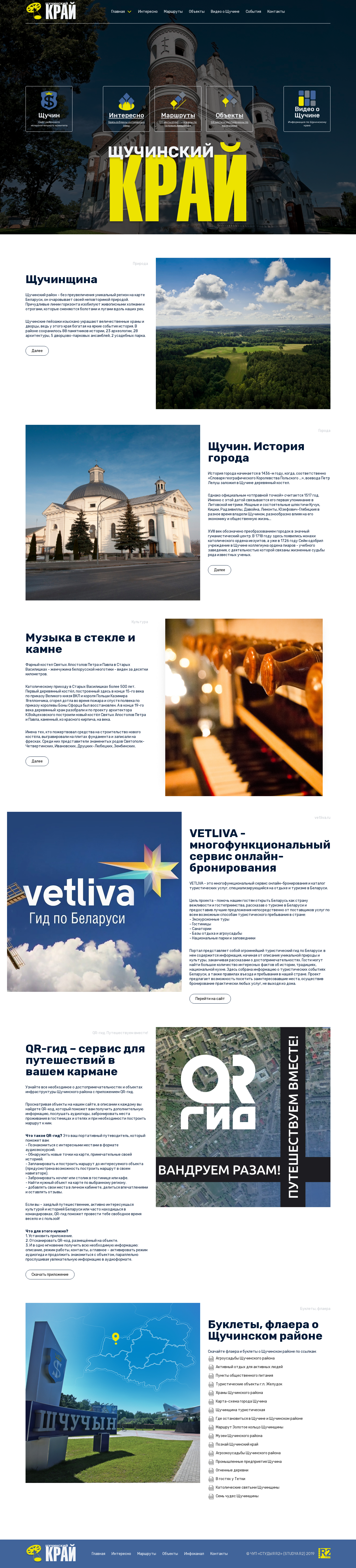 | AI-анализ | The website "Щучинский край" (Shchuchynsky Kray) is a regional tourism information portal for the Shchuchyn region in Belarus. It provides information about tourist attractions, marsh routes, and history of the region. The website includes sections for cities, culture, and events. Users can access information about the history of Shchuchyn, its notable landmarks, and local traditions. The site also features videos and registration options. The Shchuchyn region is known for its unique natural beauty, with rolling hills, forests, and wetlands along its waterways. It is home to numerous historical sites, including 88 monuments of history, 23 archaeological sites, 28 architectural structures, and 5 dvorzo-parkovy ansambly (palace-park ensembles). The website also includes sections for cities, with information about |