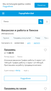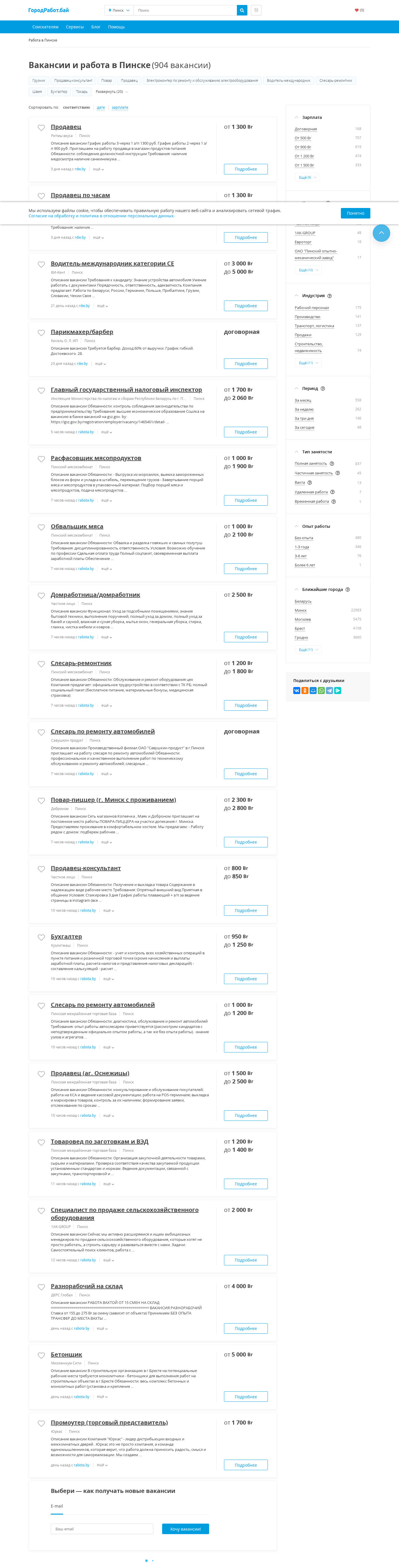 | SEO-описание | Ищете работу в Пинске? На нашем сайте Вы найдете более 854 свежих вакансий от прямых работодателей. Быстрый и удобный поиск вакансий с ГородРабот.бай |