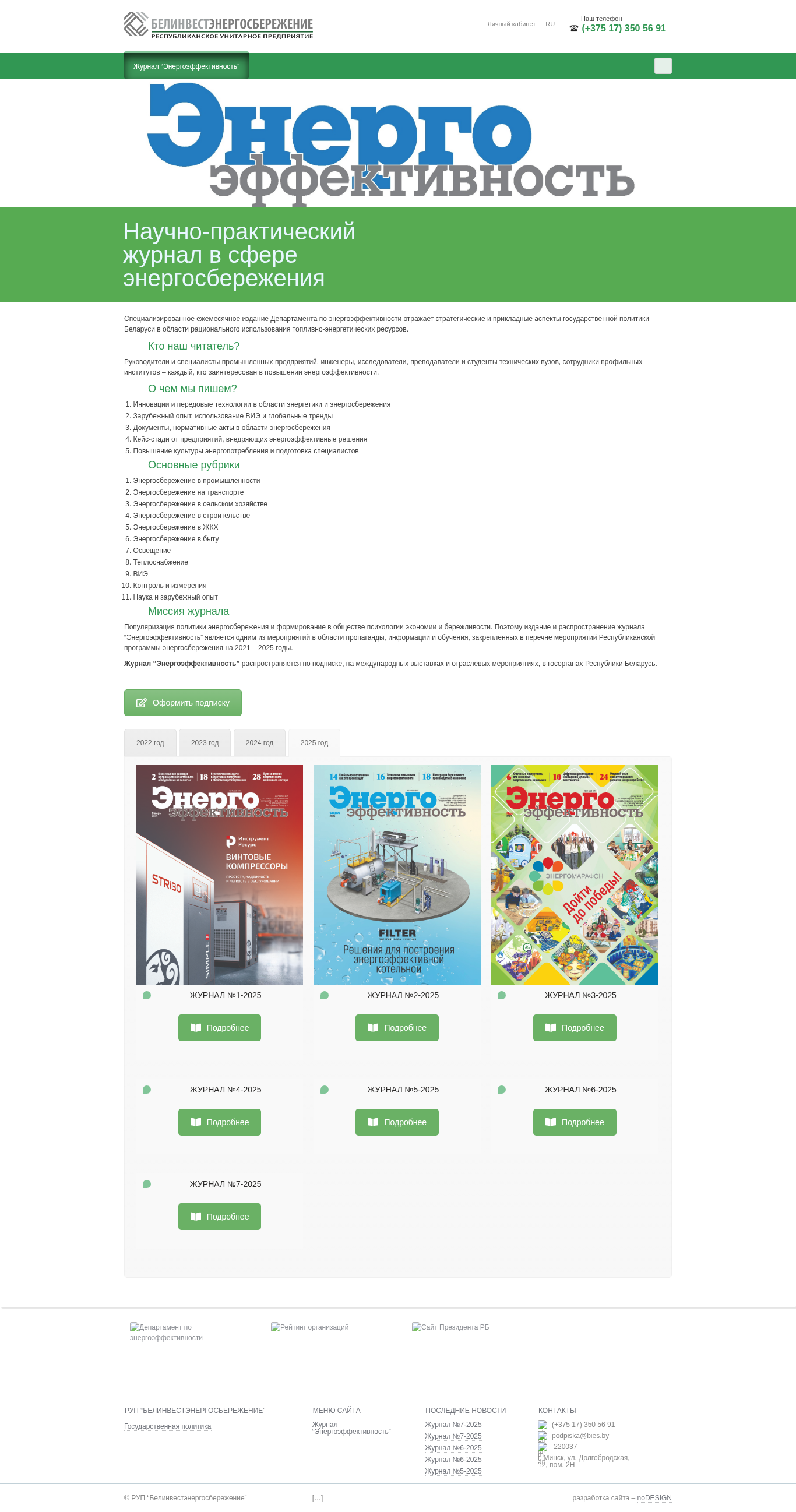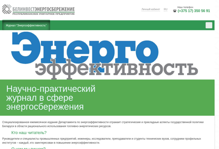 | AI-анализ | The website is the official site of RUP 'Belinvestenergosberezhenie' (Belinvestenergy saving), a department within the Belarusian government responsible for implementing energy-saving policies. The site features a scientific journal, "Energoefefektivnost'" (Efficiency), which covers topics in the field of energy efficiency and sustainable energy use. The journal's target audience includes industrial leaders, engineers, researchers, educators, and students from technical universities, as well as professionals in related institutions. The site provides information on the journal's content, editorial board, advertising, subscription, and submission guidelines. It also includes contact information and a search function for those interested in the publication. The mission of the journal is to promote energy-saving policies and cultivate a culture of energy efficiency and conservation. |
