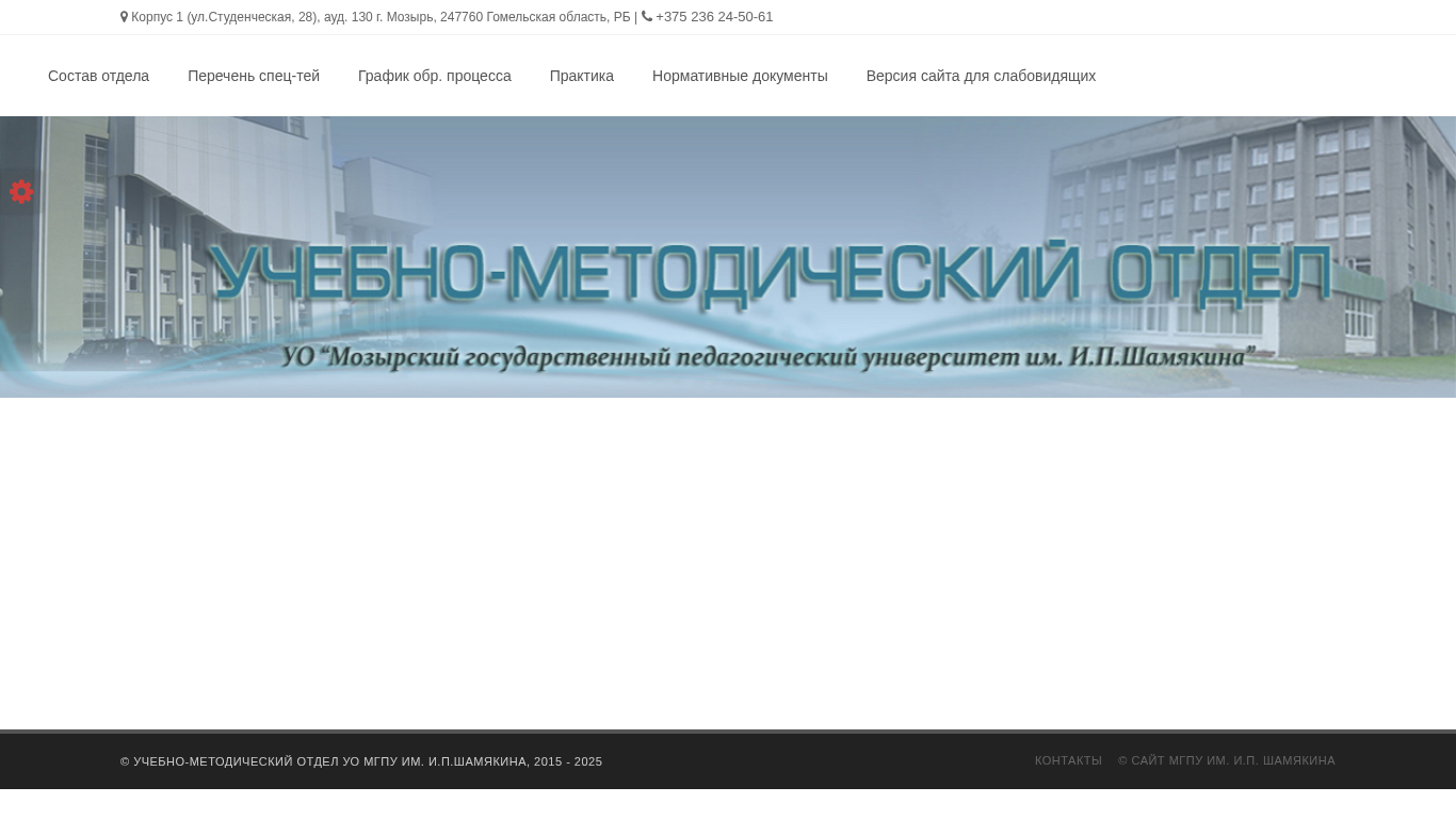 | AI-анализ | --- The portal umo.mspu.by is dedicated to the Educational Methods Department (Учебно-методический отдел) of the Mozyr State Pedagogical University named after I.P. Shaмякиna. The website provides information on the department's staff, specialties, schedules, and various educational materials such as documents, methodological recommendations, and normative documents. It also includes details about the optimization concept, plan and program development, and student attestation. The site offers versions for visually impaired users and is available in Russian from 2015 to 2025. |