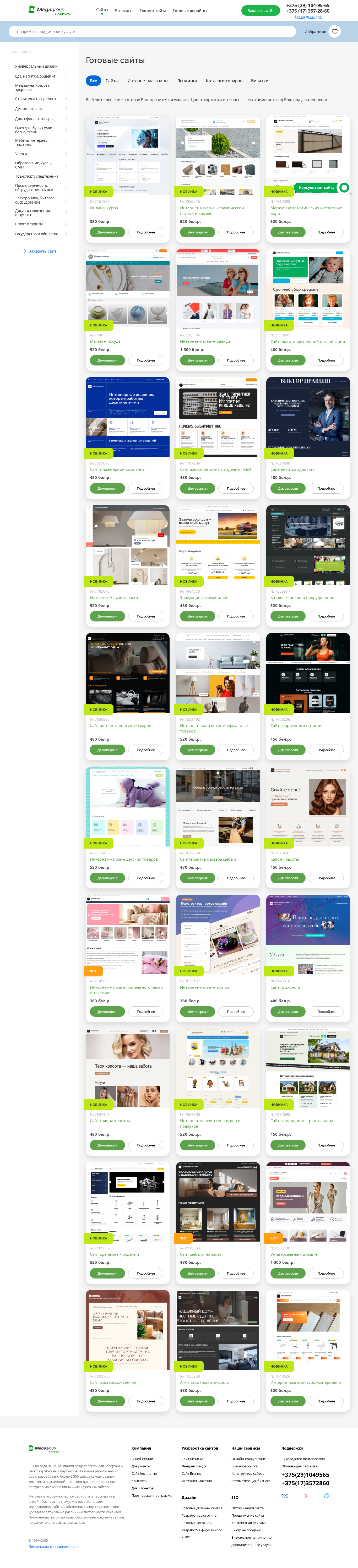 | SEO-описание | Мегагрупп (Минск, Гомель, Витебск, Беларусь) предлагает недорого купить готовый сайт. Выберите подходящее решение в каталоге из более 1200 вариантов. Удобная CMS, надежный хостинг и бесплатная консультация для клиентов. |