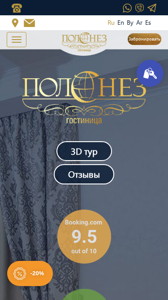 | AI-анализ | This online resource is the official website of Hotel Polonez in Minsk. It provides information about the hotel and allows booking rooms at favorable prices. The phone numbers for reservations are +375 (17) 388-35-40 and +375 (17) 388-35-41. The website offers a navigation menu in multiple languages: Ru, En, By, and Es. The hotel's address is given as g. Minsk, ul. Paskevich, 3, and the email address for booking is booking@hotelpolonez.by. Hotel Polonez is located in the heart of historical Minsk, close to major city attractions, banks, business centers, theaters, museums, and shops. The hotel offers a restaurant, free Wi-Fi throughout, and a conference room for business meetings. |