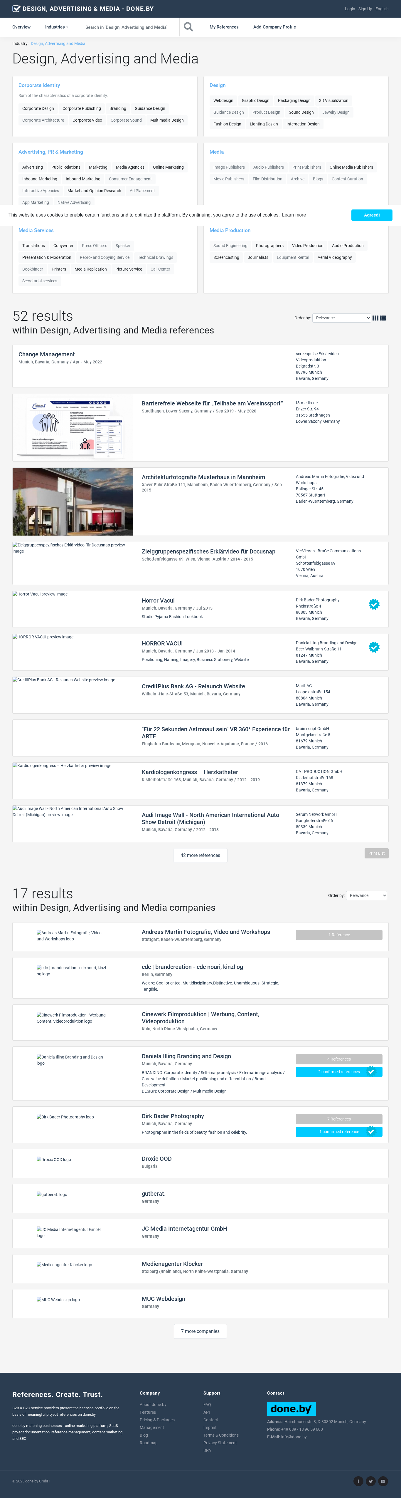 | SEO-описание | On done.by companies of the 'Design, Advertising and Media' industries present their portfolio based on informative project references. |