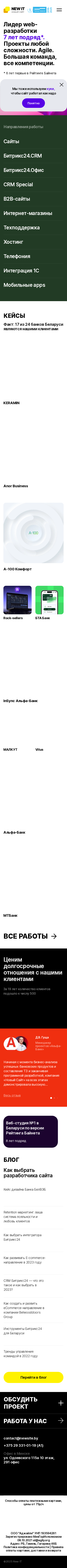 | AI-анализ | This website is a web development and e-commerce solutions provider based in Minsk, Belarus, offering site creation and development of internet stores across the country. New IT is considered the best web studio in Belarus and allows clients to order a custom site under their key. Services include development using Bitrix24 CRM and office solutions, creation of mobile applications and websites, hosting, B2B-sites, and technical support, among others. The company has a blog and contact information for inquiries. With over seven years of experience in web development, New IT has a large team with various competencies and offers projects of all complexities using the Agile methodology. Some of its clients include 17 out of 24 banks in Belarus, such as KERAMIN, Anor Business, Rock-sellers, Wildberries, BTA Bank, A-100 Comfort |