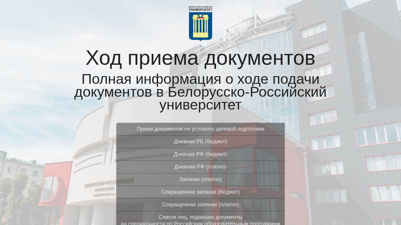 | SEO-лексика | документов дневная бюджет платно заочная ход подачи сокращенная приема полная информация ходе белорусско-российский университет прием условиях целевой подготовки список лиц |