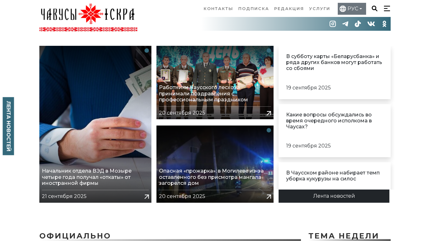 | Название / Заголовок | Официальный сайт Чаусской районной газеты "Искра" - Информационный портал Чаусского района |