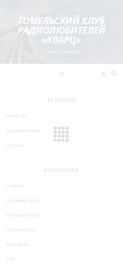 | AI-анализ | The web project "Гомельский клуб радиолюбителей «Кварц»" (Quartz Radio Amateur Club of Homel, Belarus) is a website dedicated to the Homel Radio Amateur Club "Кварц" from Homel, Belarus. The site provides information about the club, its history, documentation, FAQ, and contacts. It also features a photo album, archives of past news articles, and information about upcoming and past events including radio contests and competitions. Key topics covered on the site include the building and optimization of radio equipment, antennas, and transceivers, as well as news and announcements related to these subjects. The site includes sections for documents, history, photo album, contacts, FAQ, rubrics, news, and archives. The site's top words include "Гомельский" (Homel), " |