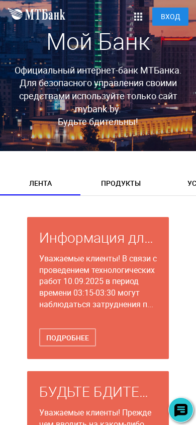 | AI-анализ | The website mybank.by is the official online banking platform for Belarusian bank МТБанк. It offers various services such as account management, transfers, payments, and information for clients. Users are advised to be cautious and double-check the website address before entering personal data, as there have been reports of fraudulent sites mimicking legitimate ones with slight address differences. The website features a notice about potential disruptions in card transactions during specific dates and times due to technical work. It also includes information on currency exchange rates and various bank services. |