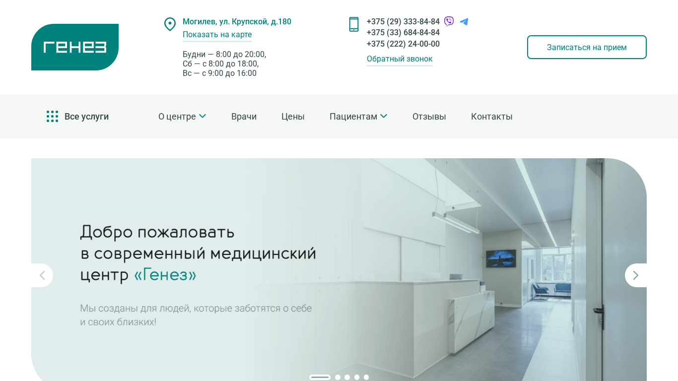 | SEO-описание | ГЕНЕЗ – медицинский центр в Могилеве. Мед клиника предоставляет широкий спектр услуг для взрослых и детей. Консультации врачей, диагностика и лечение заболеваний |