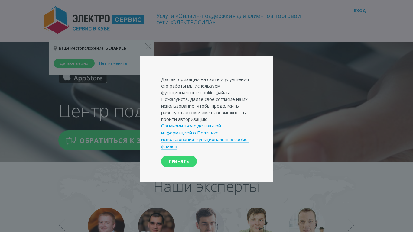 | AI-анализ | --- This online resource, titled "Электросервис" (Electroservice in English), is a support website for the clients of the commercial network "ЭЛЕКТРОСИЛА" (Electrosila) in Belarus. The website provides online assistance services. Users can authorize themselves on the site and improve its functionality by accepting functional cookie-files. The website is designed for clients in Belarus and offers various ways of communication including an online chat and a call-back service. Users can also register for a new account, reset a forgotten password, or authorize themselves using an SMS code. The website's functionality includes a helpdesk and a messaging system for users to communicate with experts named Andrey, Artem, Vladimir, Evgeny, Pavel, and Alexander. The website is owned by "ЭЛЕКТРОСИЛ |
