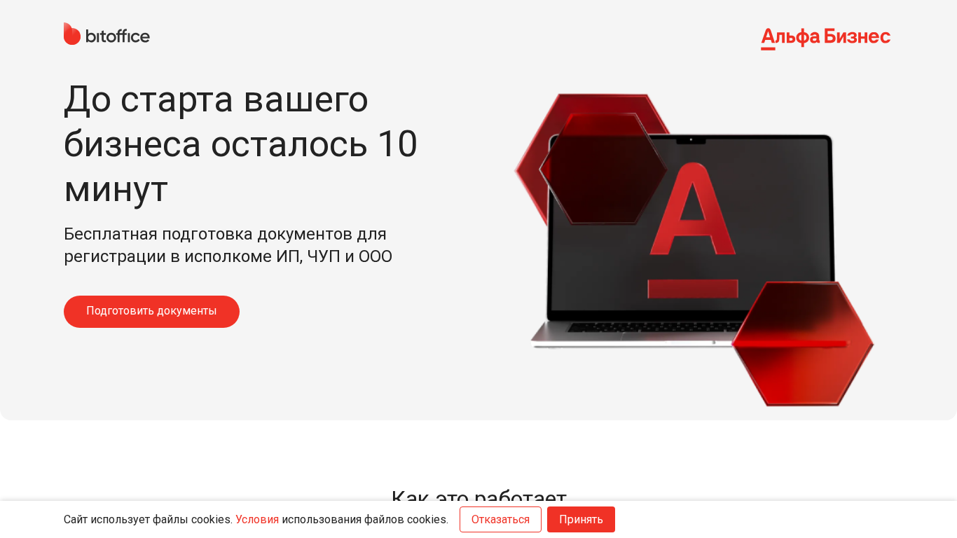 | AI-анализ | The portal Registration IP, OOO, CHUP | Bitoffice is a website dedicated to business registration services. Users can register an Individual Proprietorship (IP), a Limited Liability Company (OOO), or a Small Entrepreneurial Partnership (CHUP) absolutely free of charge and within 10 minutes. The site offers free document preparation for registration in the executive committee, and upon completion, the documents are emailed to the user for downloading and printing. Additionally, users can open a business account with Alpha Bank, and while individuals can do so online, legal entities require additional documents signed at a nearby Alpha Bank office. The site also offers various business services such as online payment processing, a free six-month package of business services for new businesses, a coworking space in Minsk, an online accounting service, and cash collection devices for businesses. The website supports multiple forms of business ownership, including the |