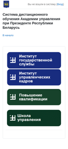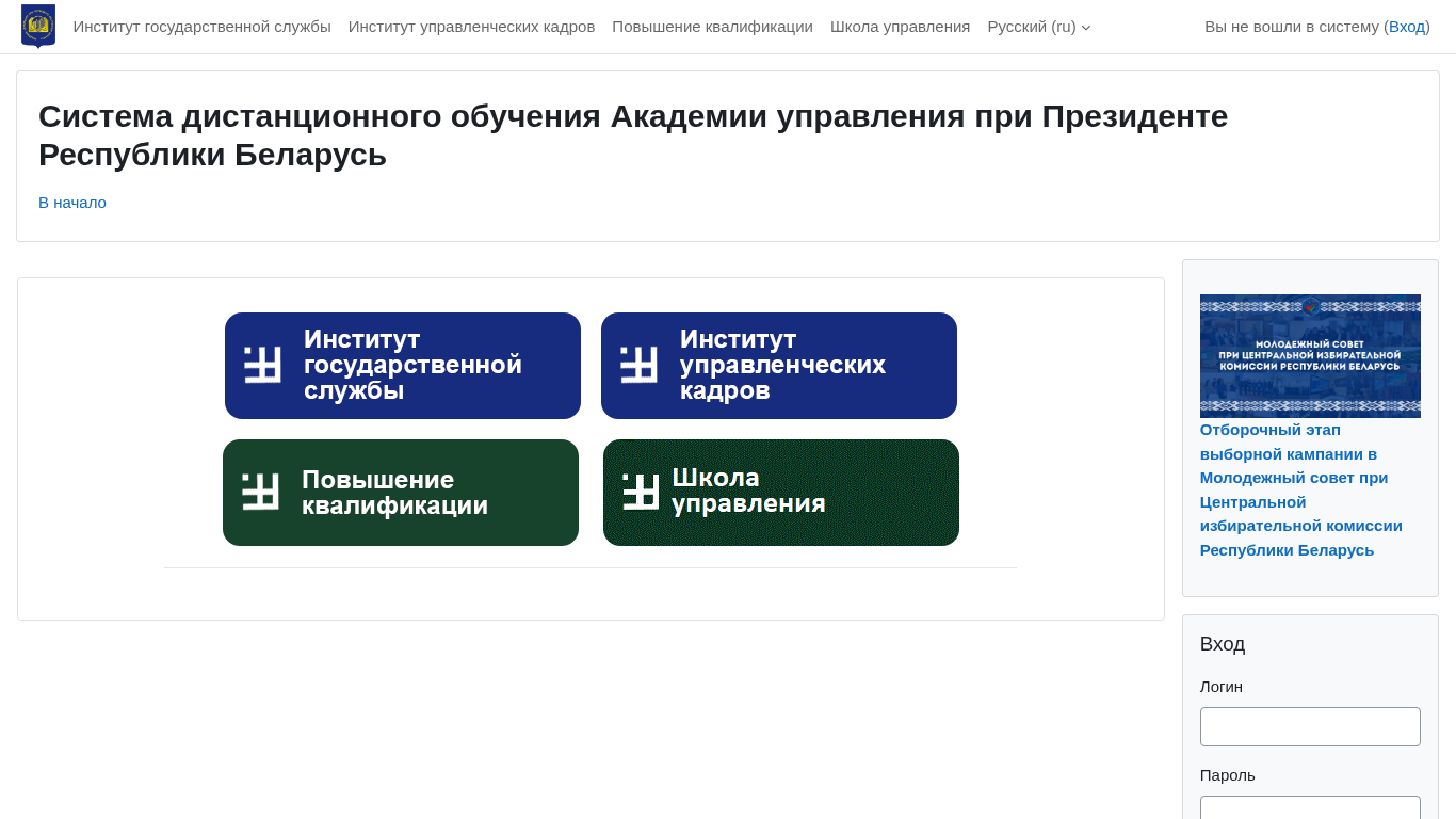 | AI-анализ | The web project "В начало | СДО Академии управления" (moodle.pac.by) is a Moodle-based e-learning platform for the Institute of State Service and the Institute of Managerial Personnel of the Academy of Management under the President of the Republic of Belarus. The platform offers distance learning opportunities in Russian and English for users to access courses on government service, management personnel development, and management education. Users can log in to the system to access content, but if they have not yet registered, they can use the provided contact information to obtain further assistance. The website also includes blocks for login, forgotten password recovery, and contact information for the Center of Distance Education. The domain is hosted on the pac.by server. |