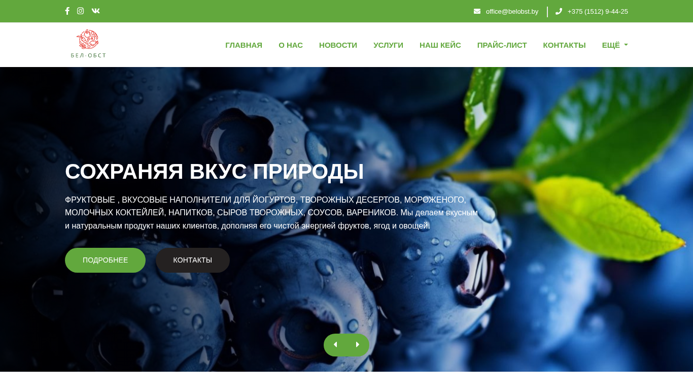 | AI-анализ | The website Belobst.by is the online presence of a foreign limited liability company named БЕЛ-ОБСТ based in Volkovysk, Belarus. The company specializes in producing and supplying fruit, taste, and vegetable fillings, purees, and other food products for the food industry. Since 2015, they have been enhancing their clients' end products with unique flavors and aromas through innovation, knowledge, and meticulous labor. The website offers information about the company, its news, services, a case study, pricing list, contacts, a photo gallery, reviews, FAQ, conditions, and policies. The content emphasizes the high-quality and safety of Belobst's products, which are natural, innovative, and traditional, maintaining the taste of nature in their fruit, vegetable fillings, and purees. The website is available in Belarus |