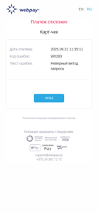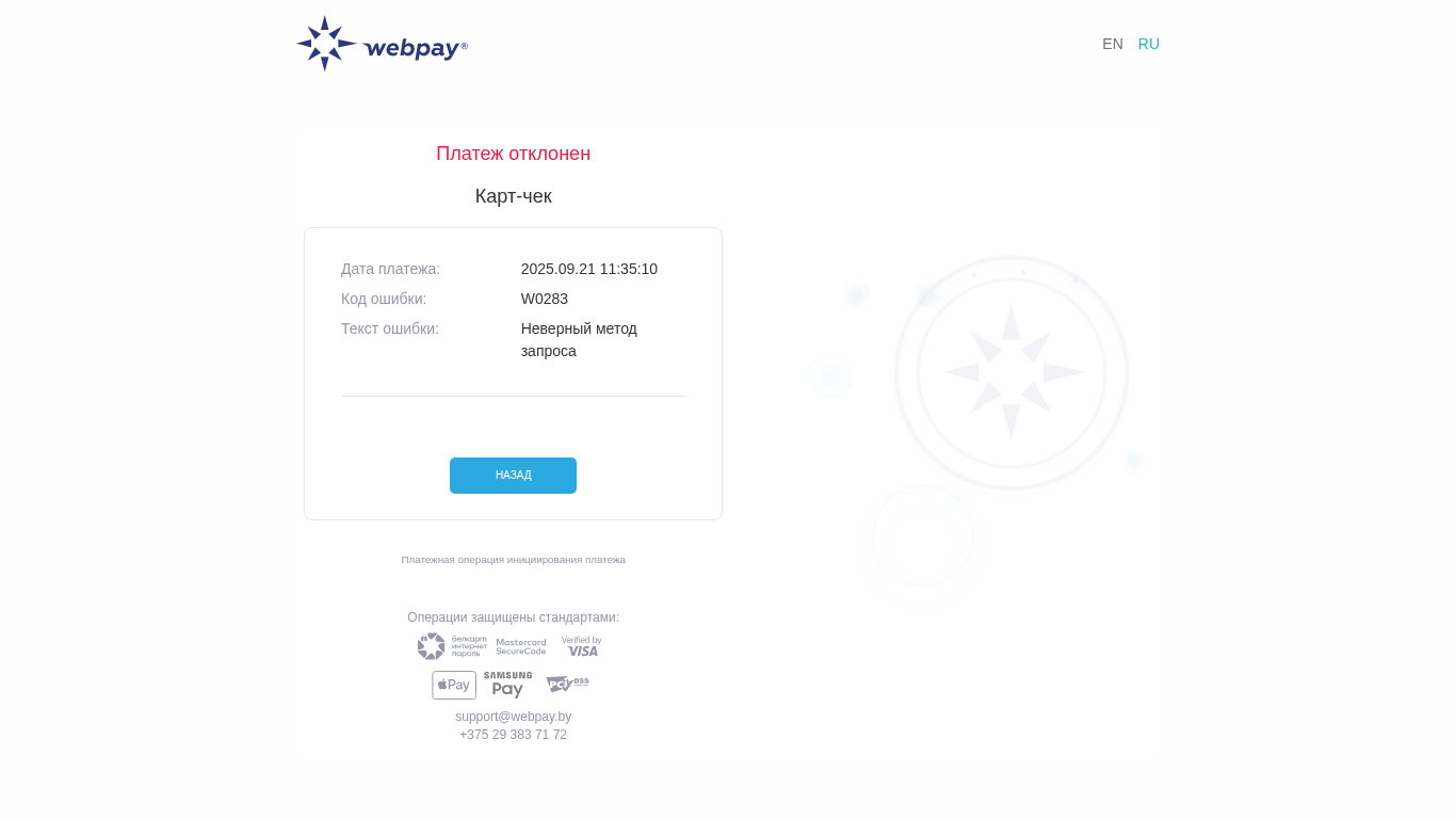 | SEO-лексика | номер операции webpay защищены стандартами support 375 383 карты платежа платеж отклонен информация заказе получатель сумма вернуться месяц год оплата |