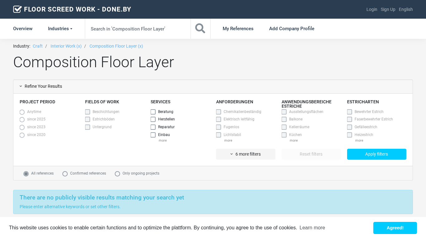 | SEO-описание | On done.by companies of the 'Composition Floor Layer' industries present their portfolio based on informative project references. |