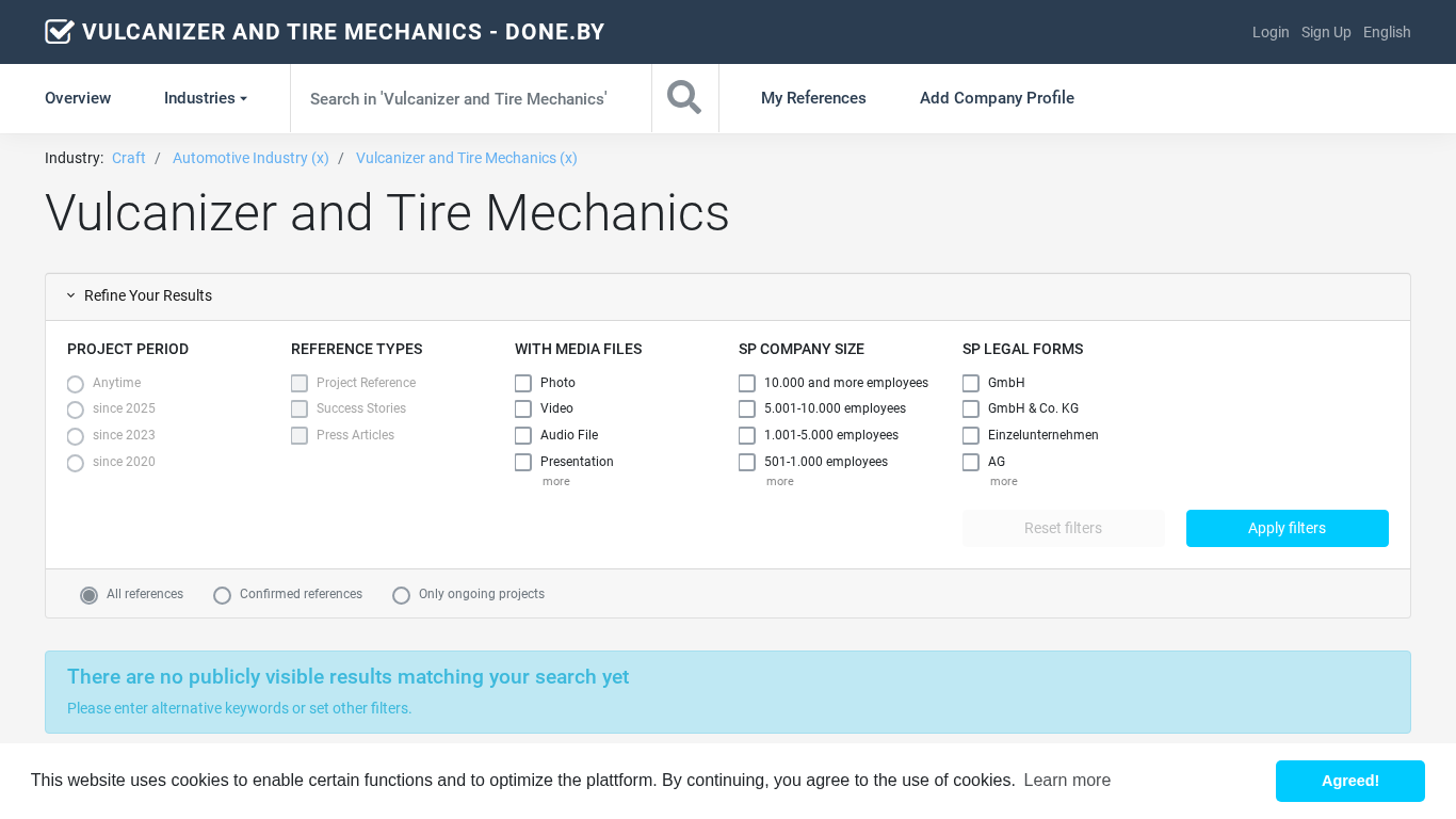 | Название / Заголовок | Vulcanizer and Tire Mechanics - Project References and Companies / done.by |