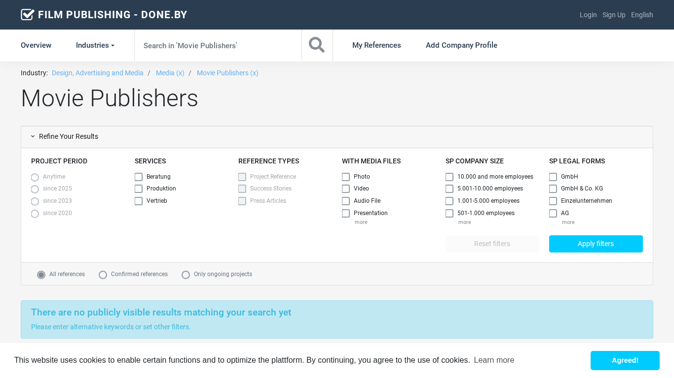 | Название / Заголовок | Movie Publishers - Project References and Companies / done.by |