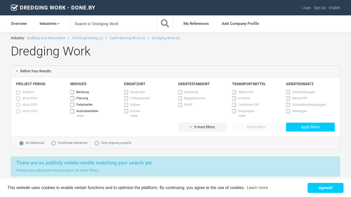 | AI-анализ | The website 'Dredging Work - Project References and Companies' on done.by serves as a platform for companies within the Dredging Work industry to showcase their portfolio through informative project references. Keywords associated with the website include 'Dredging Work reference marketing', 'Dredging Work reference management', 'Dredging Work online marketing', 'Dredging Work case studies', 'Dredging Work verified references', 'Dredging Work B2B marketing', 'Dredging Work customer references', 'Dredging Work experiences', 'Dredging Work projects', 'Dredging Work freelancers', 'Dredging Work self-employed', 'Dredging Work service companies', 'Dredging Work solution providers', and 'Dredging Work impressions'. The website offers filters for project period, services provided, company size, legal forms, and more. Industries covered include Building and |