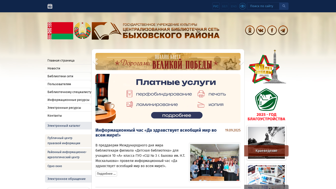| Название / Заголовок | Главная страница - ГУК «Централизованная библиотечная сеть Быховского района» |