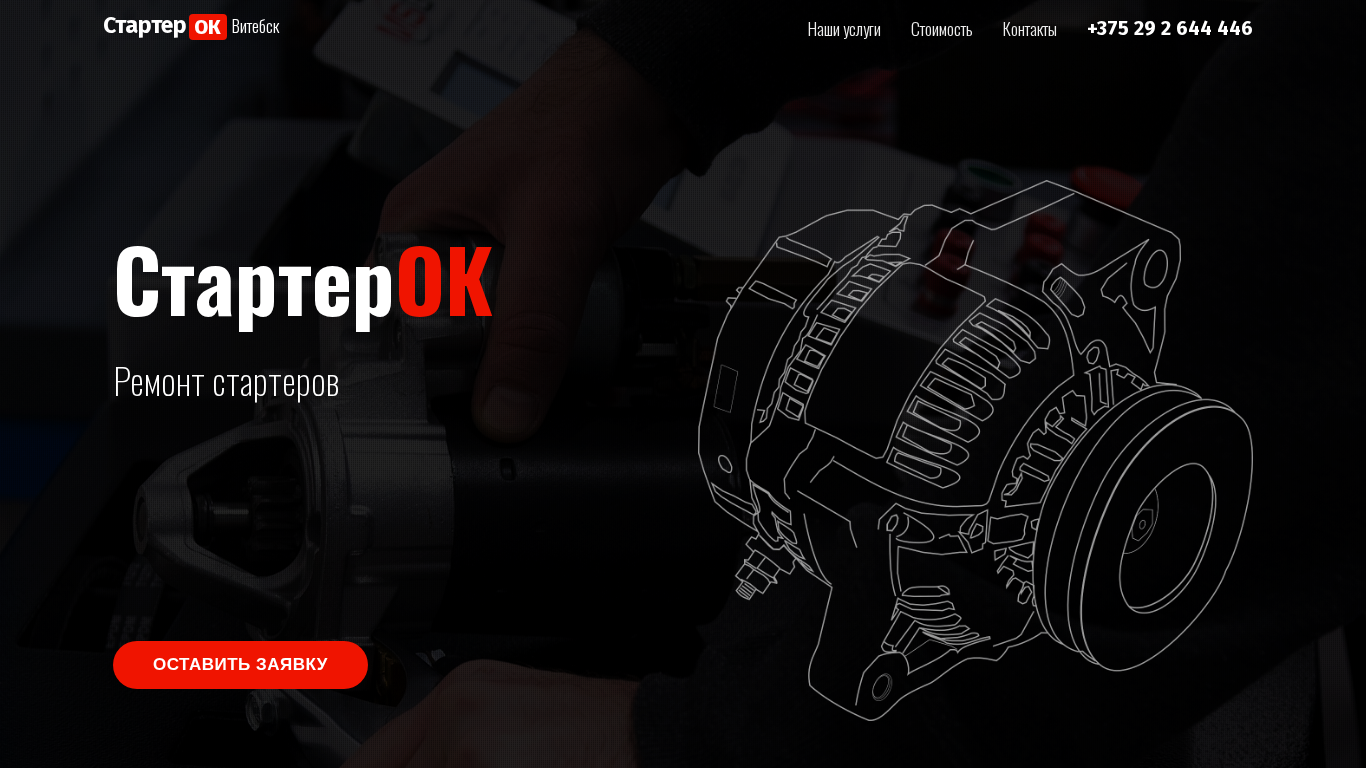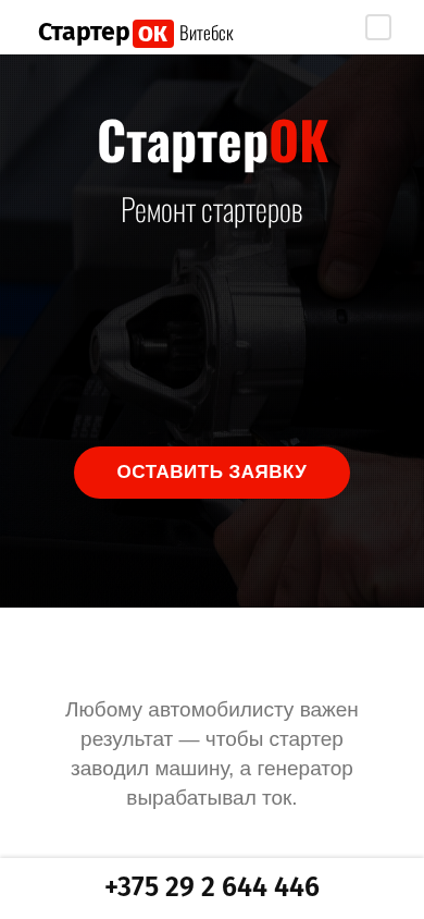 | AI-анализ | The website "StarterOK" is a car repair service based in Vitsebsk, Belarus. The main services offered are the repair and replacement of starters and generators, as well as the refilling of automotive air conditioners. The website provides contact information for those seeking to make an appointment, with a phone number listed. The website's title is "СтартерОК" and keywords include "ремонт," "сто," "обратился," "причине," "зарядка," "мастер," and "стартерок," among others. The website also offers a free diagnosis service for starters, generators, and other vehicle accessories. The repair and replacement services come with a 90-day guarantee. The website has been in operation for over 10 years and boasts knowledgeable staff and reliable equipment. Positive customer reviews describe successful repairs of gener |