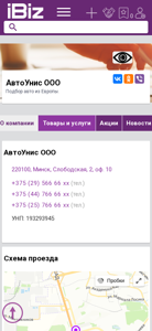 | AI-анализ | language: ru This website is an organization called АвтоУнис OOO, located in the city of Minsk, Belarus, specifically at Слободская, 2, оф. 10. The company specializes in the acquisition of vehicles from Europe and provides related services. The website includes contact information with three phone numbers: +375 (29) 566 66 xx, +375 (44) 766 66 xx, and +375 (25) 766 66 xx. The company's Unified State Register number is 193293945. The website also includes a map for visitors to find the location, as well as business hours from Monday to Friday, 09:00 to 18:00, with no breaks for |