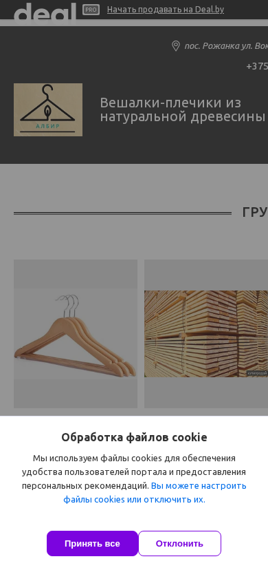 | AI-анализ | --- The web project "Albir.deal.by" is an e-commerce platform selling wooden hangers and related services, including transportation of goods. The website provides contact information, product offerings, and pricing for these items. Keywords associated with the site include "Albir," "company," "contacts," "veeshalki-plechki" (wooden hangers), "prices," and various location-specific terms. The company "Albir" offers a range of wooden hangers in different colors and quantities, as well as services for their transportation. Contact information includes phone numbers +375 (33) 639-58-22 and +375 (15) 143-67-19. The site also includes information on delivery and payment methods, as well as useful resources. The main product categories are wooden hangers |