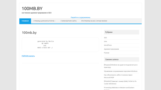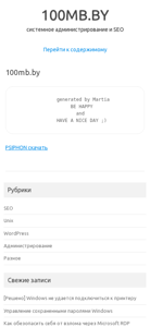 | AI-анализ | The web project "100MB.BY" is a website dedicated to system administration and SEO. The title of the website is "100MB.BY - 100MB.BY" and it uses the keywords "100mb," "windows," "администрирование," "seo," and various versions, as well as words like "перейти," "содержимому," "главная," "страница," "бухгалтеров," "новая," "старая," "сайта," "программы," "все," "случаи," and "жизни." The website offers solutions for issues related to Windows operating systems, such as connecting to a printer and managing saved passwords. It also provides tips on securing oneself from hacking attempts through Microsoft RDP. The website is divided into sections including "SE |