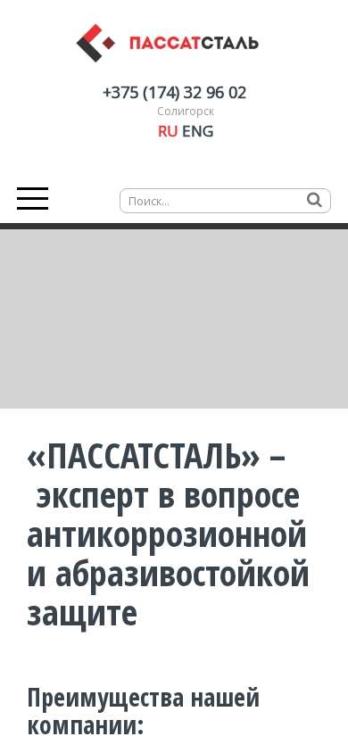 | SEO-описание | «ПАССАТСТАЛЬ» – эксперт в вопросе антикоррозионной и абразивостойкой защите. Мы производим широкую линейку промышленных покрытий для различных сред и условий работы. |