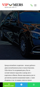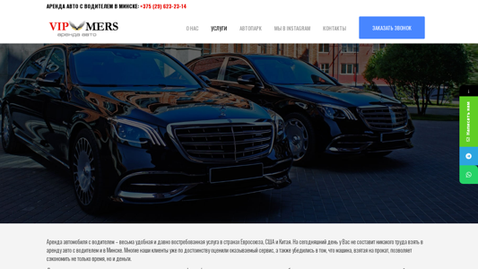 | AI-анализ | --- The web project "VIP-Mers.by" offers car rental with a driver in Minsk. They cater to various customer requirements with five-star ratings and operate 24/7. Multiple payment methods are accepted. Services include car rental for weddings, airport transfers to Moscow, Vilnius, Riga, and Warsaw, delegation meetings, business tours, and car protection. Their Mercedes-Benz fleet consists of executive, business, economy, sedans, SUVs, minibuses, and minivans. They are also present on Instagram and provide contacts for inquiries. |