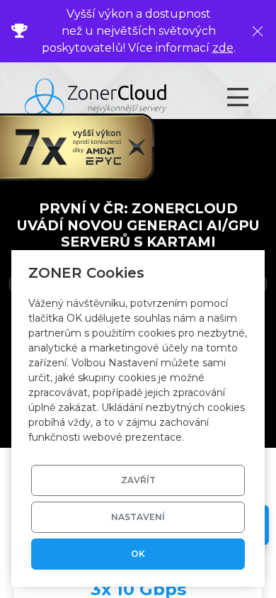 | AI-анализ | language: czech The website ZonerCloud offers cloud services on the VMware and Hyper-V platform. It provides virtual servers VPS, managed multihosting, web storage, email hosting, and SMTP servers. Keywords associated with the website include virtual servers, VPS, cloud server, mail server, SMTP server, Windows server, Linux server, server, cloud, slu, pro, zoner, nosti, spole, jsme, servery, gpu, serveru, konn, vps, nebo, dat, cen, spr, kter, webov, zonercloud. The website offers high performance and availability surpassing that of major global providers. It guarantees a 99.99% uptime, automatic server deployment within 55 seconds, unlimited data transfer, and a money-back guarantee. It supports Prox |