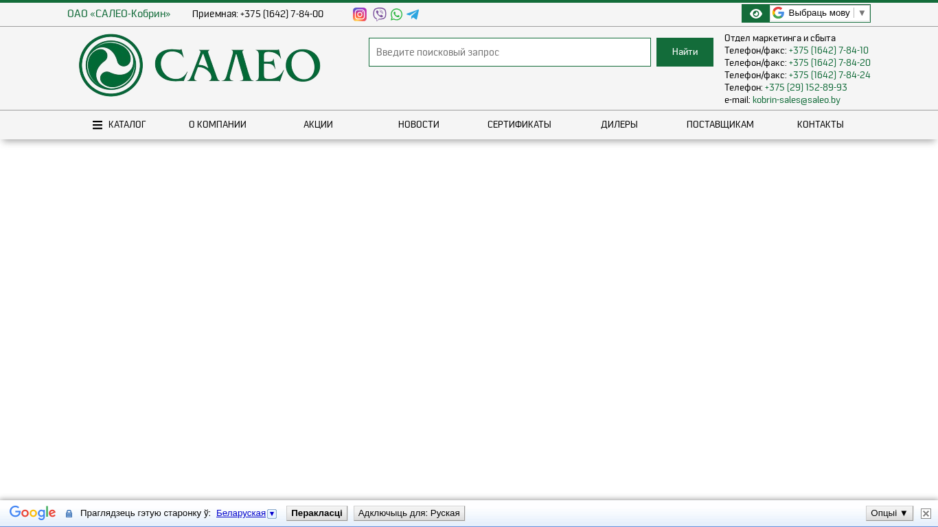 | SEO-описание | ОАО «САЛЕО-КОБРИН» — ведущий производитель высококачественных гидроцилиндров в Беларуси. Широкий ассортимент, собственное производство, доступные цены. Продукция для сельского хозяйства и машиностроения |